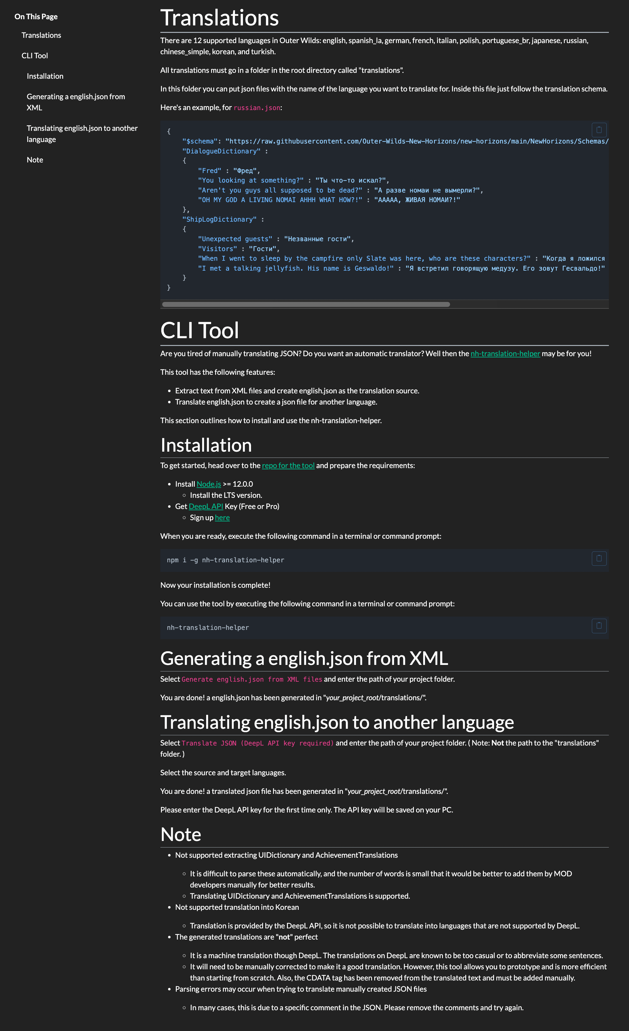 - Added a CLI Tool section to the Translations page of the